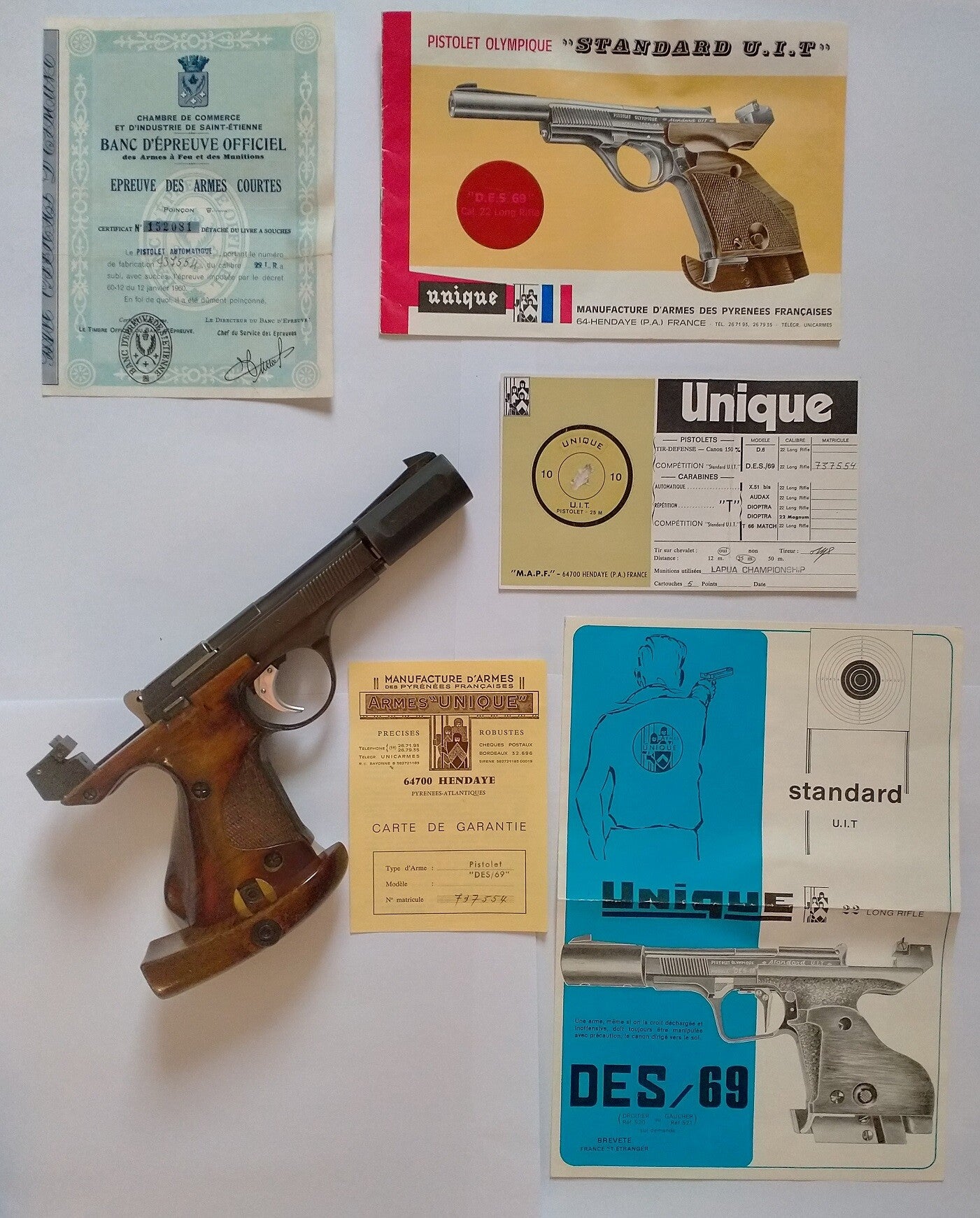Unique DES 69 22lr 5 coups ( Droitier, crosse anatomique réglable) en mallette, entièrement d'origine, avec tous documents.