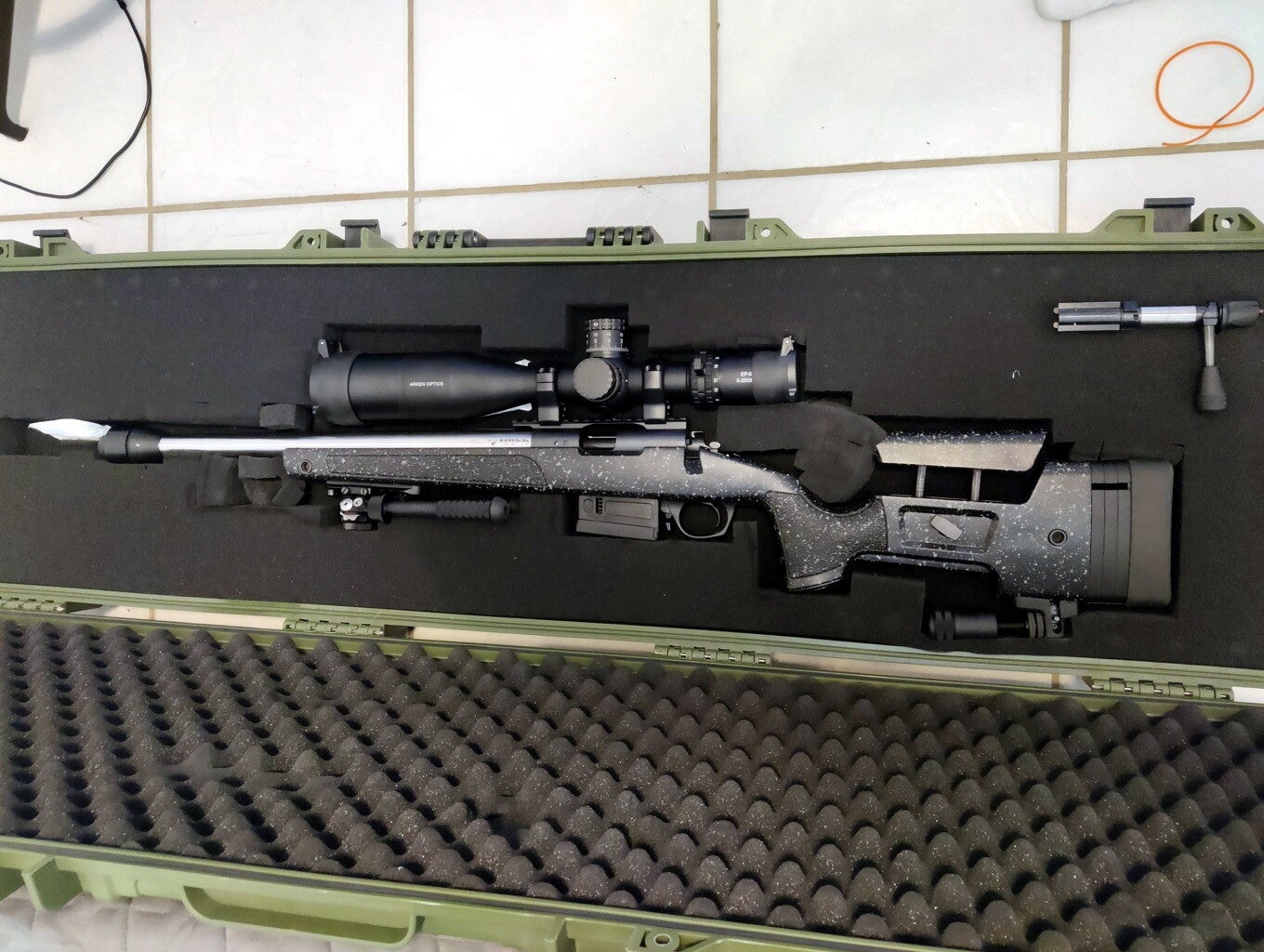 La carabine a été achetée en mars 2024 (très peu tiré, environ 200 balles). J'ai repris le tir en début d'année mais souhaite passer sur un plus gros calibre pour faire de la plus longue distance (je me suis un peu précipité pour acheter le matériel :-( ). (La lunette et le bipied ne font pas partis de la vente).